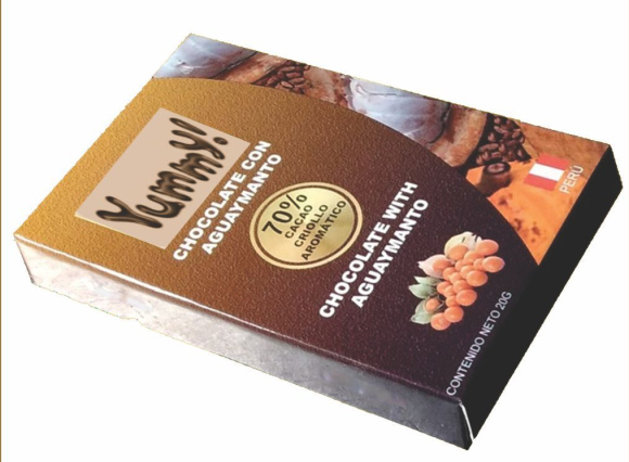 El Chocolate Yummy es el producto que se obtiene del grano de cacao tostado, descascarillado, molido, refinado, conchado, temperado, moldeado, y empaquetado combinada con la deliciosa fruta de cultivos selectos en una esmerada y responsable industrialización, que hacen de cada tableta de chocolate una experiencia única.